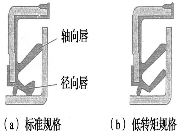 低轉(zhuǎn)矩設(shè)計方案:通過去除徑向唇,并使軸向唇雙重化(圖6),實現(xiàn)了軸承的高密封性和低轉(zhuǎn)矩化的目標(biāo)。