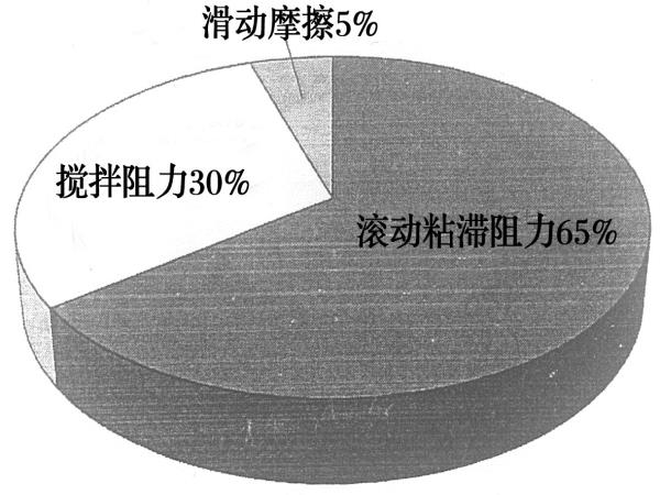 自動變速箱類的變速驅(qū)動橋中,差動裝置多用自動變速箱油( ATF )進(jìn)行潤滑;在前置后驅(qū)車(FR車)和四輪驅(qū)動力(4WD)上搭載的后差動裝置則采用黏度較高的齒輪油潤滑。后差動裝置的小齒輪軸用圓錐滾子軸承產(chǎn)生轉(zhuǎn)矩的原因分析如圖1所示,其滾動粘滯阻力是源于滾道和滾子接觸部位的潤滑油膜的阻力。