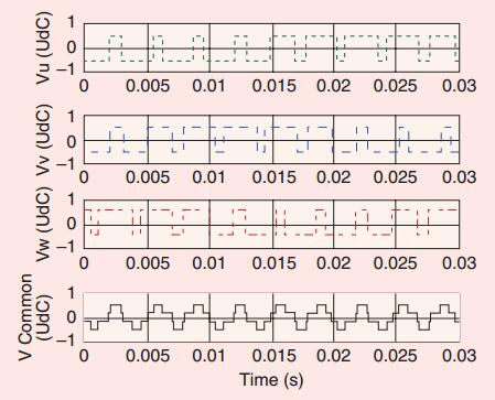 絕緣柵雙極型晶體管被用于創(chuàng)建脈沖寬度調(diào)制(PWM)輸出電壓波形,特征是在電動機(jī)中快速轉(zhuǎn)換以及在轉(zhuǎn)換器輸出中電壓可快速上升到8 kV,這提高了驅(qū)動器的效率和動態(tài)性能。使用PWM變頻器的副作用是快速轉(zhuǎn)換( 100 ns)引起的高頻(HF)電流現(xiàn)象。PWM變頻器是固有的共模電壓和陡前沿脈沖(快速電壓轉(zhuǎn)換)引起各種高頻交流電的源頭??焖俎D(zhuǎn)換引發(fā)的高頻(5 kHz ~ 10MHz)電流造成了軸承損傷。
