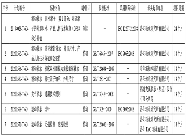 2020年滾動軸承行業(yè)在研標(biāo)準(zhǔn)信息