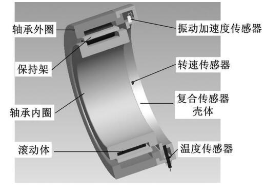 1) 自感知: 基于微傳感器技術(shù)集成轉(zhuǎn)速、振動、溫度、載荷及潤滑狀態(tài)等多源服役信息采集傳感裝置,傳感器集成化程度高,可實現(xiàn)對外圈、內(nèi)圈、保持架甚至滾動體服役信息的監(jiān)測與識別,信息覆蓋程度高; 由于傳感器直接集成于軸承本體,監(jiān)測信號的信噪比高,能更靈敏、更早期地發(fā)現(xiàn)設(shè)備及軸承狀態(tài)的異常。