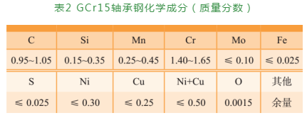 GCr15材料常用來制作室溫下工作的航空航天軸承,其化學(xué)成分見表2。
