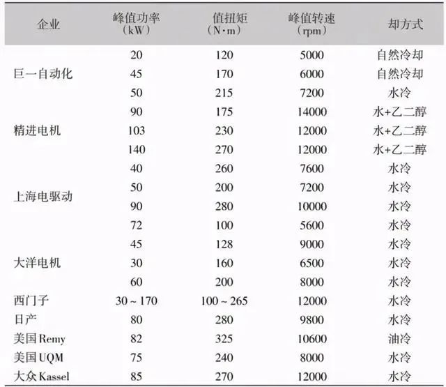 在電機(jī)效率方面,國(guó)內(nèi)電機(jī)的最高效率均達(dá)到94%~96%,已達(dá)到西門子、Remy等企業(yè)的水平。但是在高效區(qū)面積方面,如系統(tǒng)效率大于80%的區(qū)域占比方面尚存在一定差距。我國(guó)電機(jī)的高效區(qū)面積占比集中在70%~75%,而國(guó)外電機(jī)基本達(dá)80%。此外,電機(jī)的冷卻方式已經(jīng)從自然冷卻逐步發(fā)展為水冷,此前國(guó)內(nèi)電機(jī)企業(yè)采用水冷為主,國(guó)外先進(jìn)的電機(jī)企業(yè)已發(fā)展到油冷電機(jī)。