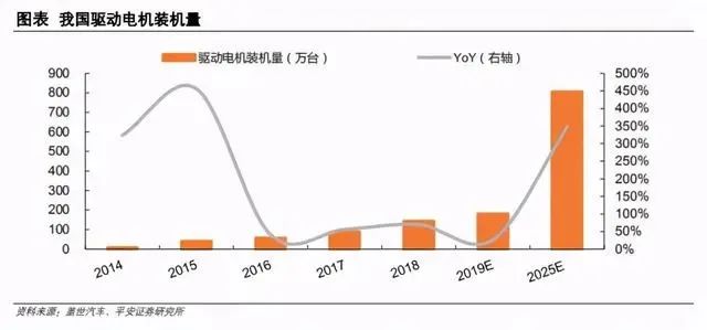 2018年我國(guó)新能源汽車銷量為125.6萬臺(tái),預(yù)計(jì)至2025年,新能源汽車銷量將達(dá)到700萬臺(tái),驅(qū)動(dòng)電機(jī)的市場(chǎng)規(guī)模也隨之快速增長(zhǎng)。數(shù)據(jù)顯示,2020年初全球新能源汽車電機(jī)電控市場(chǎng)規(guī)模約200億元,其中電機(jī)和電控的價(jià)值量比約4:6,即電機(jī)市場(chǎng)規(guī)模約80億元。而據(jù)此簡(jiǎn)單測(cè)算,2025年全球新能源汽車電機(jī)市場(chǎng)規(guī)模有望提升至250億元,GAGR超20%。