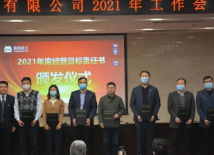 會上,朱峰向陳鋒頒發(fā)了公司2021年“經(jīng)營目標責任書”,陳鋒代表公司向各下屬企業(yè)負責人頒發(fā)了2021年“經(jīng)營目標責任書”。