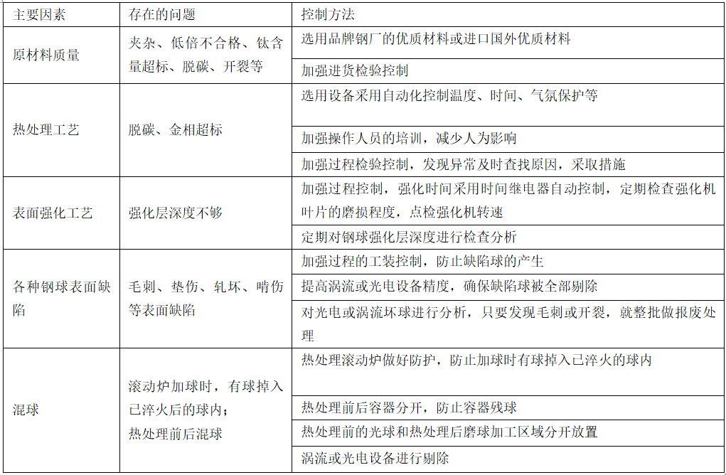 1 影響鋼球壽命可靠性的主要因素和控制方法