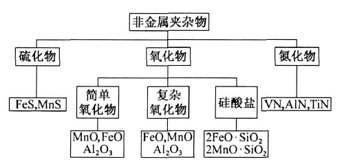 鋼中非金屬夾雜物按化學(xué)成分詳細(xì)分類見圖1,主要分為三大類。