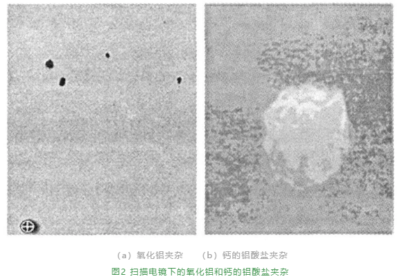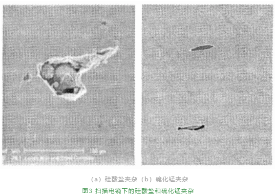 ①形態(tài)為球形,這種夾雜物通常出現(xiàn)在用硅鐵脫氧不完全的鋼中;