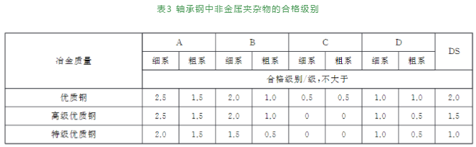高碳鉻軸承鋼則按照GB/T18254—2016標(biāo)準(zhǔn)進(jìn)行分類及評級。按GB/T 10561—2005中的A法進(jìn)行評級,其檢驗(yàn)結(jié)果應(yīng)符合下列規(guī)定: