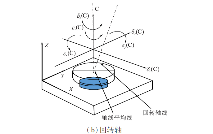 加工誤差是機(jī)床加工精度在工件上最直接的體現(xiàn)。加工誤差是指刀具實(shí)際加工軌跡與工件理論輪廓之間的偏差,幾何誤差是機(jī)床加工精度最直接、最關(guān)鍵的影響因素。如圖1所示,數(shù)控機(jī)床主要由平動(dòng)軸和回轉(zhuǎn)軸構(gòu)成,以數(shù)控外圓磨床為例,各軸運(yùn)動(dòng)誤差相互作用,共同影響數(shù)控機(jī)床的加工精度。