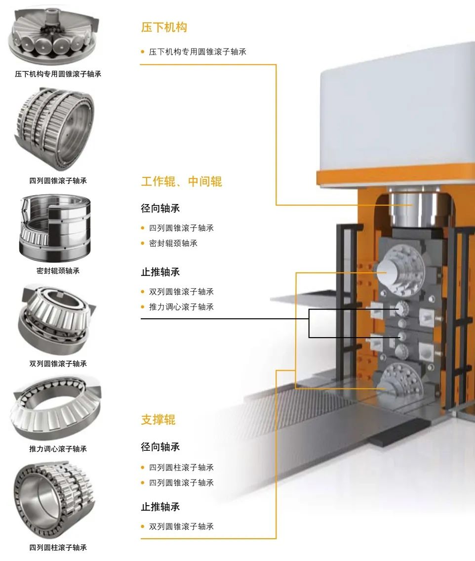 軋機軸承是軋機機座中的重要部件,其主要作用是支承轉(zhuǎn)動的軋輥,承受由軋輥傳來的軋制力,并保持軋輥在機架中的正確位置。軋機軸承的工況非常惡劣,受高溫、重載、水和灰塵等因素的影響。雖然生產(chǎn)消耗中,軸承的消耗只占總消耗的5%左右,但對軋鋼產(chǎn)量的影響卻高達20%,因此,必須特別關(guān)注軋機軸承的各項使用和性能指標(biāo)。