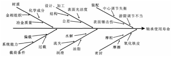 圖1 影響軋機軸承使用壽命的因素分析魚骨圖