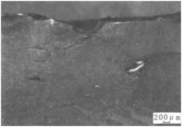 材料冶金質(zhì)量從根本上影響軋機軸承的使用壽命,需要嚴(yán)格控制材料缺陷如氣孔、疏松、碳化物積聚、夾雜物等,特別是存在夾雜物時,裂紋首先在夾雜物與基體交界處形成并擴展,導(dǎo)致早期疲勞剝落(圖2、圖3)。