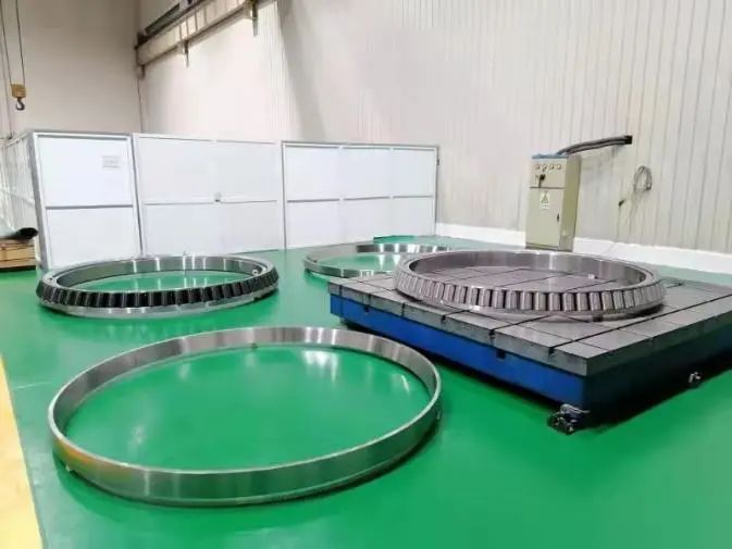 7MW級海上風電主軸軸承作為風力發(fā)電機的零部件,載荷復(fù)雜多變,軸承可靠性及精度要求高,設(shè)計壽命需達到25年以上,技術(shù)難度大。為滿足嚴苛的工況要求,軸研所技術(shù)團隊通過科學選用材料、仿真設(shè)計、優(yōu)化制造工藝、保持架的特殊設(shè)計與加工等,攻克了多個技術(shù)難點,成功研制出7MW海上風電主軸軸承。其采用了兩套圓錐滾子軸承布置形式,外徑尺寸達3100mm。