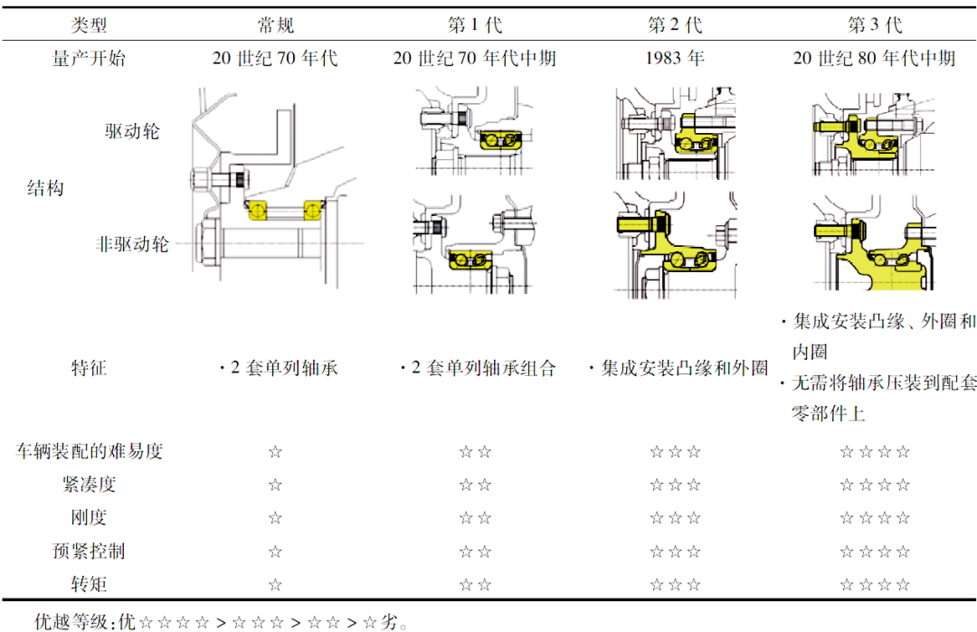 表1 NTN輪轂軸承單元的演變和特點(diǎn)