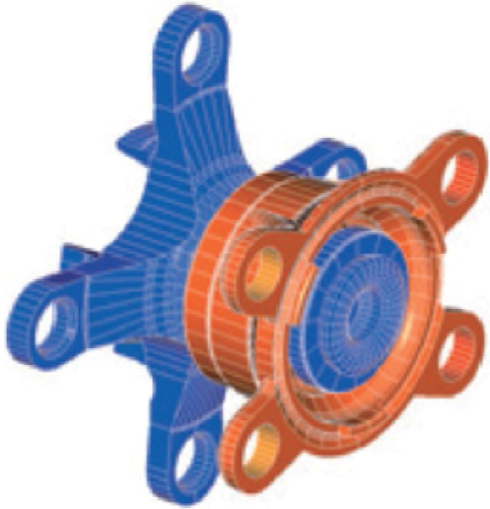 NTN采用有限元分析來(lái)確定減重的同時(shí)保持強(qiáng)度和剛度,以滿(mǎn)足所需的性能要求。最優(yōu)形狀通過(guò)拓?fù)鋬?yōu)化得到。一種超輕型輪轂軸承形狀被研制出來(lái),如圖2所示。NTN采用積累的技術(shù),在滿(mǎn)足要求的技術(shù)規(guī)范的同時(shí),提供最輕質(zhì)量的最優(yōu)形狀。
