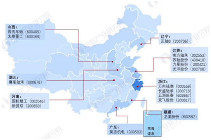 浙江省軸承制造行業(yè)的上市企業(yè)有萬向錢潮、長盛軸承、五洲新春、雙飛股份等;江蘇省有南方軸承、蘇軸股份、力星股份等企業(yè),瓦軸位于遼寧省。