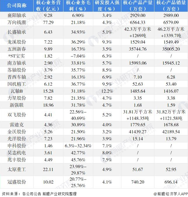 注:核心業(yè)務此處是指有關軸承制造業(yè)務,其中萬向錢潮核心業(yè)務披露口徑為汽車零部件(主要包括軸承,僅小部分為汽車排氣系統(tǒng))。