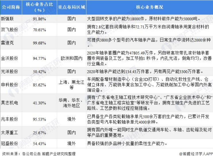 軸承制造行業(yè)的上市公司中,金沃股份、兆豐股份為國外業(yè)務占比較大。瓦軸擁有軸承技術與產(chǎn)品研發(fā)和制造基地,襄陽軸承的產(chǎn)能較大。整體來看,我國軸承制造企業(yè)在加強核心研發(fā)技術、擴大產(chǎn)能以及完善產(chǎn)品結構方面較為重視。