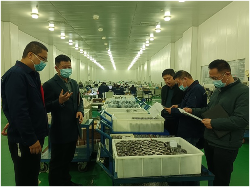 3月24日上午,黨委副書記、總經(jīng)理高飛、公司副總經(jīng)理郭向東、總經(jīng)理助理喬忠義、專職董事趙翀一行4人至精密部件事業(yè)部精密軸承制造部車間對智能生產(chǎn)線運(yùn)行的進(jìn)度和加工產(chǎn)品的實(shí)際情況進(jìn)行督導(dǎo)檢查,精密部件事業(yè)部總經(jīng)理?xiàng)罨ⅰ⒏笨偨?jīng)理孫東和精密軸承制造部副部長郭建輝對目前智能生產(chǎn)線的使用加工情況進(jìn)行了詳細(xì)匯報(bào)。