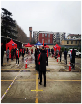 全員大檢測(cè),時(shí)間緊、任務(wù)重、困難多,不容絲毫馬虎。職能部門二支部黨員協(xié)同延安社區(qū)工作人員制定全員核酸檢測(cè)方案,繪制區(qū)域分布平面圖,做到網(wǎng)格再細(xì)化、流程再具體、預(yù)案再完善。3月24日支部黨員干部下沉一線,協(xié)助社區(qū)、軸研建設(shè)志愿者連夜做好軸研所停車場(chǎng)核酸檢測(cè)點(diǎn)設(shè)置,及時(shí)聯(lián)系員工對(duì)停車場(chǎng)內(nèi)車輛清場(chǎng),按照標(biāo)準(zhǔn)規(guī)范設(shè)置登記區(qū)、采樣區(qū)、隔離區(qū),各區(qū)域粘貼一米線標(biāo)識(shí);現(xiàn)場(chǎng)擺放指示牌、工作臺(tái)、拉起警戒線,配備了防護(hù)服、測(cè)溫槍、消毒液等。為檢測(cè)工作平穩(wěn)有序運(yùn)轉(zhuǎn)提供了堅(jiān)實(shí)的保障。
