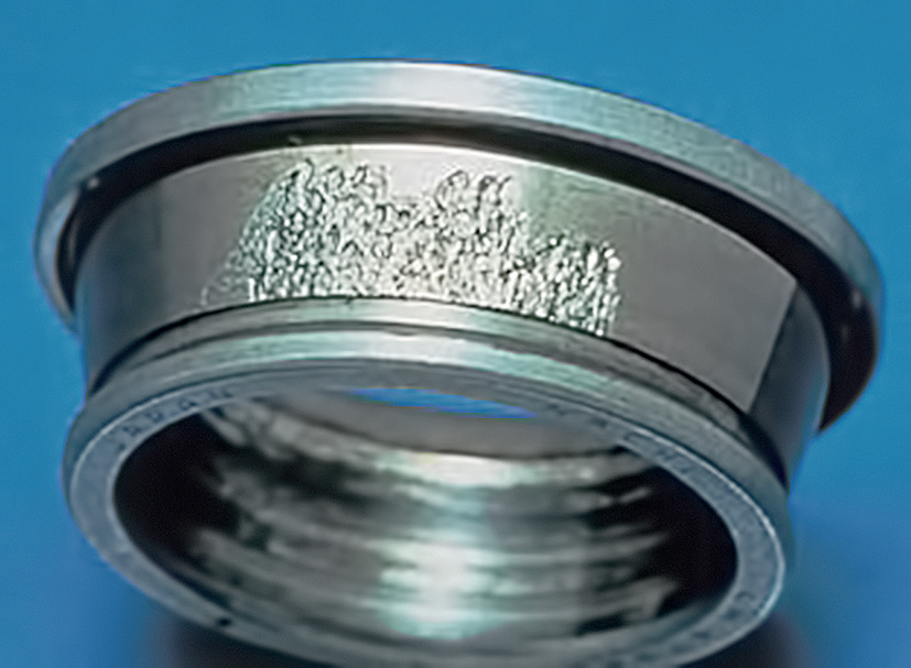 接觸表面處有損傷,這些損傷可能是原始的,即制造過(guò)程中形成的劃傷、碰痕,也可能是使用中產(chǎn)生的,如潤(rùn)滑劑中的硬顆粒,軸承零件相對(duì)運(yùn)動(dòng)產(chǎn)生的微小擦傷;損傷處可能存在潤(rùn)滑不良,如潤(rùn)滑劑貧乏,潤(rùn)滑劑失效;不良的潤(rùn)滑狀態(tài)加劇滾動(dòng)體與滾道之間的相對(duì)滑動(dòng),導(dǎo)致表面損傷處的微凸體根部產(chǎn)生顯微裂紋;裂紋擴(kuò)展導(dǎo)致微凸體脫落,或形成片狀剝落區(qū)。這種剝落深度較淺,有時(shí)易與暗灰色蝕斑相混淆。