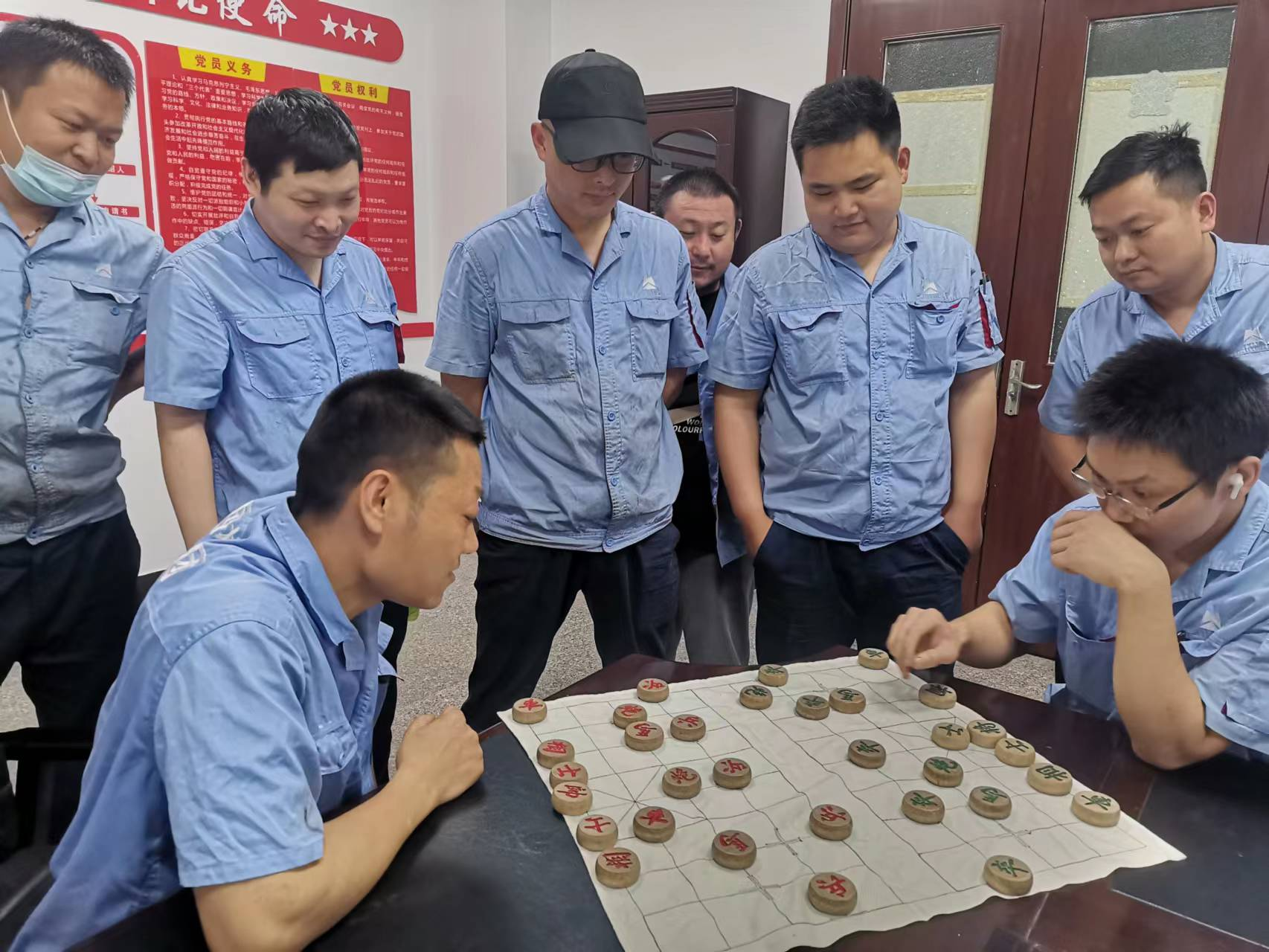 “剛才你的馬不能換他的炮”“哎呀!上士、外老將,他不就將不死你了”。眾人圍著剛剛結(jié)束的一盤棋七嘴八舌地討論著,個(gè)個(gè)胸有成竹,說得斬釘截鐵,好似戰(zhàn)場上的將軍。