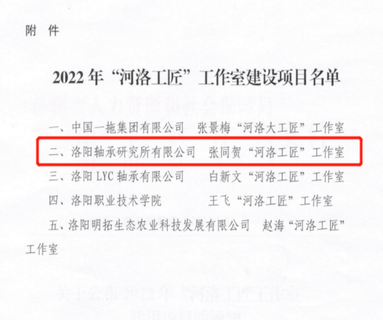 近日,洛陽市人社局發(fā)布《關(guān)于公布2022年“河洛工匠工作室”建設(shè)項目的通知》(洛人社職業(yè)〔2022〕16號),公司籌建的張同賀“河洛工匠”工作室在獲批的5家單位中名列第二,獲得項目建設(shè)配套支持資金十萬元。