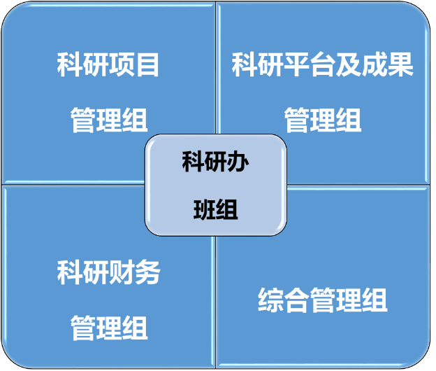 傳統(tǒng)的組織結(jié)構(gòu)多為金字塔式,缺少班組的自主性管理和運(yùn)營(yíng)??蒲修k公室積極嘗試“圓桌式組織結(jié)構(gòu)”,將班組內(nèi)部劃分為四個(gè)管理小組,分別為科研項(xiàng)目管理組、科研平臺(tái)及成果管理組、科研財(cái)務(wù)管理組、綜合管理組,每個(gè)人根據(jù)其主要負(fù)責(zé)的任務(wù),既是負(fù)責(zé)領(lǐng)域內(nèi)的組長(zhǎng),同時(shí)又是其他小組中的組員,組長(zhǎng)及副組長(zhǎng)對(duì)本組成員具有本組工作職責(zé)內(nèi)的部分考核權(quán)及任務(wù)分配建議權(quán)。