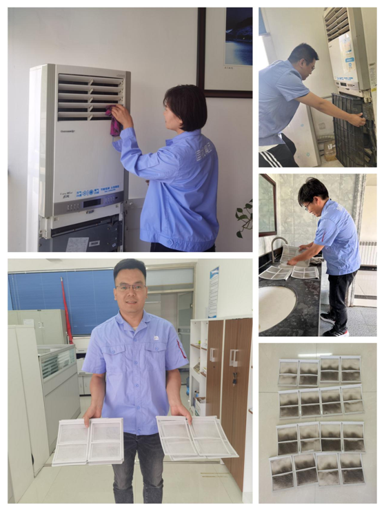 在活動(dòng)現(xiàn)場,志愿者們分工明確,配合密切,拆卸空調(diào)外殼、清洗空調(diào)濾網(wǎng)、擦拭空調(diào)外機(jī),經(jīng)過一下午有條不紊的清洗活動(dòng),辦公室和會(huì)議室的空調(diào)從內(nèi)到外煥然一新?!皼]想到空調(diào)濾網(wǎng)這么臟”“太好了,終于能放心開空調(diào)了”,看著沖洗出的灰塵污漬,員工們對(duì)志愿者助人為樂、無私奉獻(xiàn)的精神紛紛表示感謝和贊揚(yáng)。
