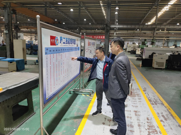 高飛現(xiàn)場考察了主軸制造部,視察了產(chǎn)品零件加工現(xiàn)場,與技術(shù)、工藝和操作人員進(jìn)行深入交流,并仔細(xì)詢問主軸制造部“三原色”班組建設(shè)情況。
