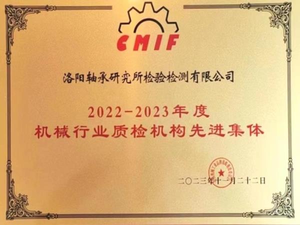 12月4日,全國機(jī)械工業(yè)質(zhì)檢機(jī)構(gòu)工作會議召開,中國機(jī)械工業(yè)聯(lián)合會執(zhí)行副會長羅俊杰為先進(jìn)集體頒發(fā)榮譽(yù)獎牌,洛陽軸承研究所檢驗檢測有限公司榮獲“2022-2023年度機(jī)械行業(yè)質(zhì)檢機(jī)構(gòu)先進(jìn)集體”稱號。
