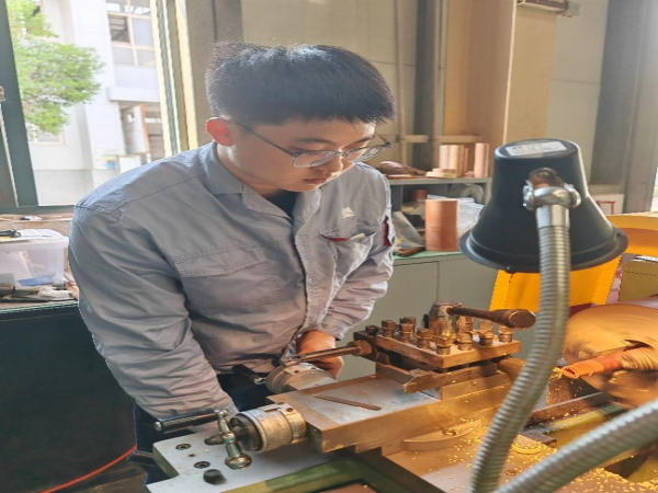 在非金屬材料開發(fā)部的車間里,一位年輕的健壯身影格外忙碌,他就是部門第一位00后員工田本州。他勤奮好學,工作中積極向老師傅們請教,業(yè)余時間還報相關課程努力鉆研,迅速提高業(yè)務水平。面對繁重的機加任務時,田本州毫不退縮,主動克服困難,用實際行動詮釋了什么是責任和擔當。