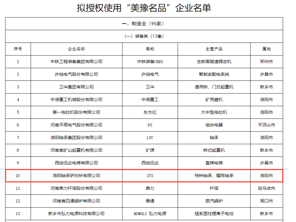 1月9日,由河南省質(zhì)量強(qiáng)省戰(zhàn)略工作領(lǐng)導(dǎo)小組辦公室主辦的河南省首批“美豫名品”發(fā)布活動(dòng)在鄭州舉行,全省各類獲授權(quán)企業(yè)128家,其中裝備制造企業(yè)13家,軸研所ZYS榜上有名,是ZYS榮獲全國“馳名商標(biāo)”后又一品牌方面殊榮。