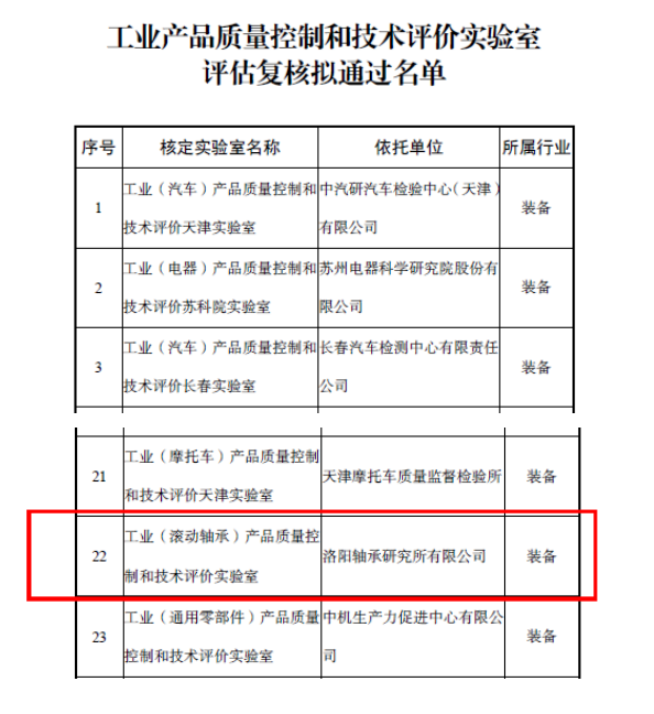 日前,工業(yè)和信息化部辦公廳組織開展了工業(yè)產(chǎn)品質(zhì)量控制和技術(shù)評價實(shí)驗(yàn)室評估復(fù)核工作,經(jīng)評審,軸研所工業(yè)(滾動軸承)產(chǎn)品質(zhì)量控制和技術(shù)評價實(shí)驗(yàn)室(以下簡稱“實(shí)驗(yàn)室”)成功通過復(fù)核。