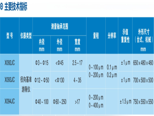 公司生產(chǎn)的X09系列軸承徑向游隙測(cè)量?jī)x為無負(fù)荷動(dòng)態(tài)高精密測(cè)量?jī)x器,測(cè)值為成品軸承徑向游隙平均值,是軸承行業(yè)成品軸承測(cè)量游隙的標(biāo)準(zhǔn)儀器。